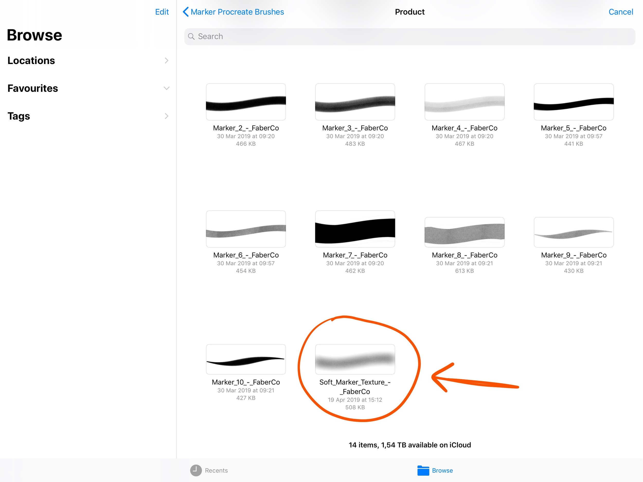 Choose the location of your brush and click on the brush file you want to add - in this example we pick a brush stored at our iCloud Drive.
